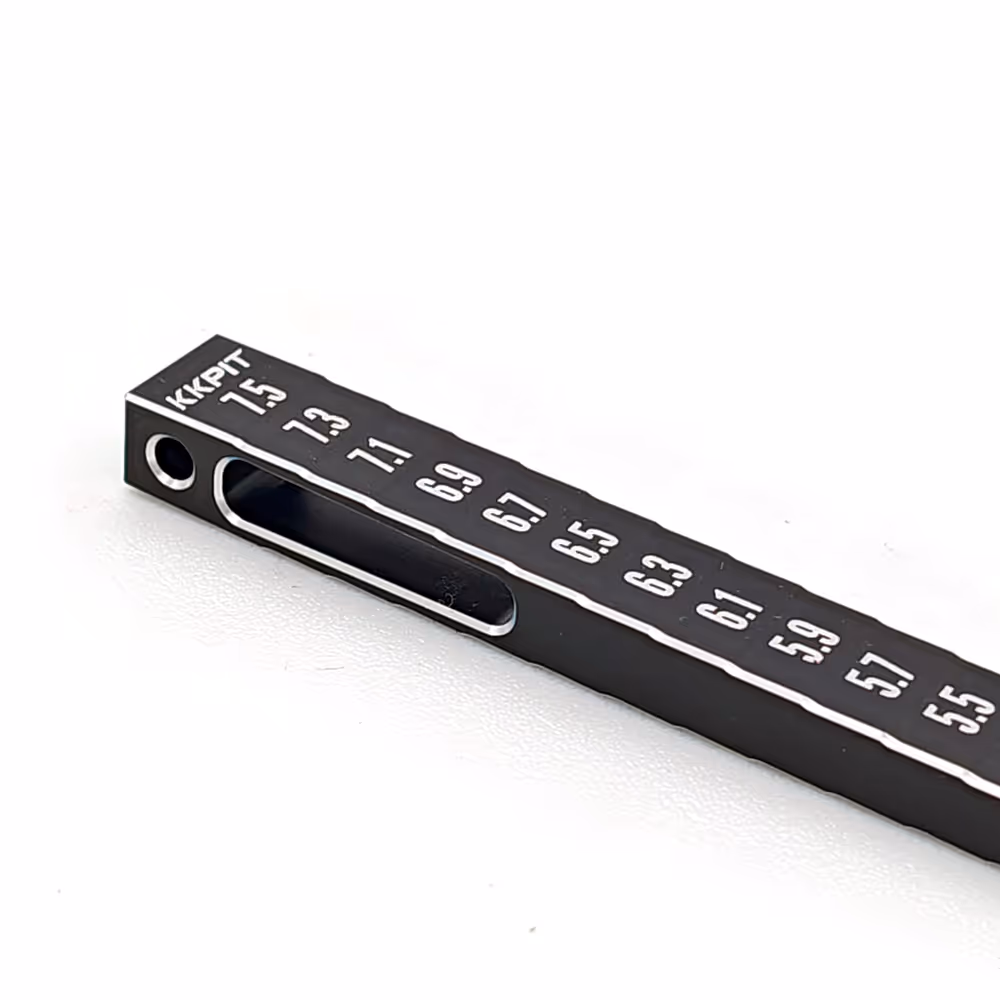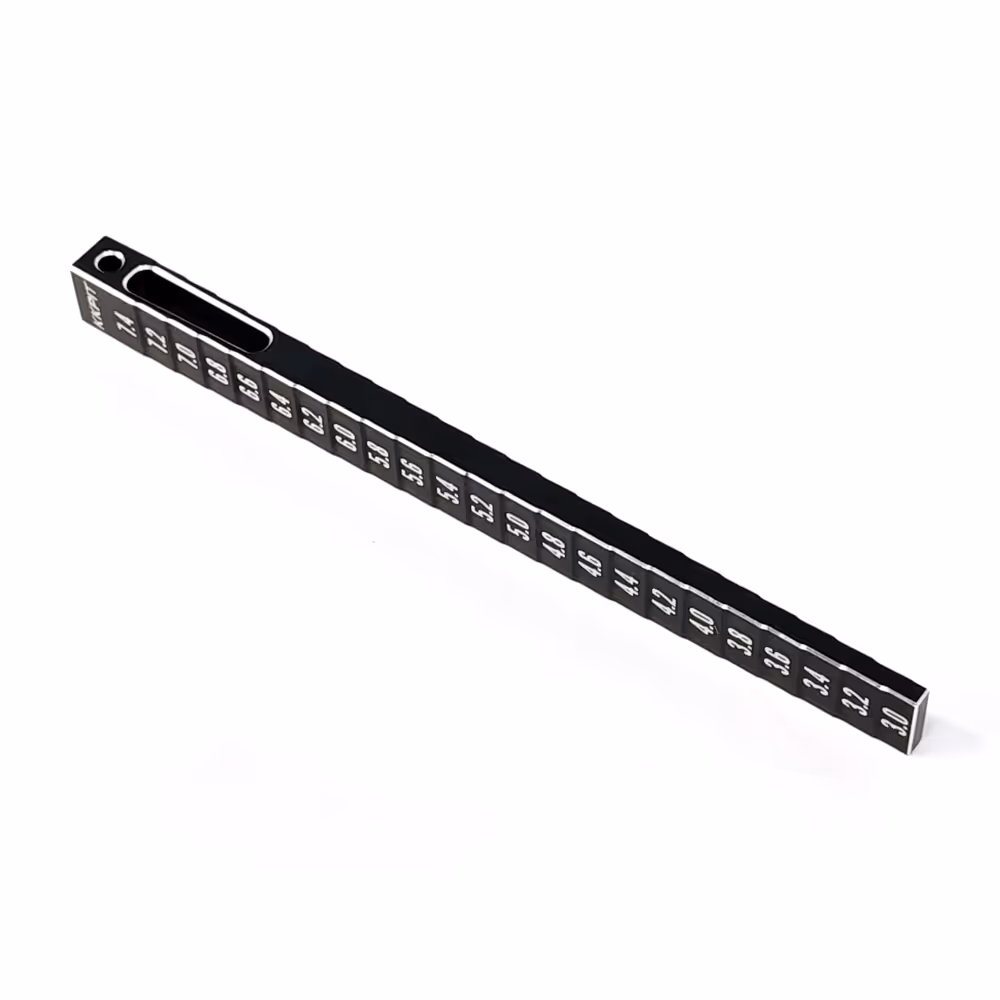 Dieses präzise, abgeschrägte Ride‑Height‑Gauge ist das ultimative Werkzeug für das Feintuning Ihrer 1:10 On‑Road‑ und Drift‑Cars. Entwickelt für ultrafeine und hochpräzise Einstellungen, verfügt dieses Gauge über eine beidseitige Funktionalität mit Messbereichen von 3,0–7,4 mm / 0.118″–0.291″ und 3,1–7,5 mm / 0.122″–0.295″. Anders als Standard‑Lehren mit 1,0 mm‑Schritten bietet dieses Werkzeug präzise 0,2 mm‑Schritte im am häufigsten genutzten Ride‑Height‑Bereich, sodass Sie ein perfektes Setup erreichen können. CNC‑gefräst aus hochwertigem, leichtem Aluminium mit einer langlebigen schwarzen Beschichtung, ist dieses Gauge für dauerhafte Performance gebaut und überzeugt mit einer glatten, professionellen Oberfläche.