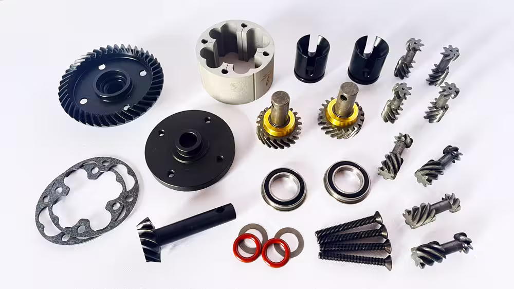 Um diese Probleme endgültig zu lösen, haben wir ein speziell für den Losi 5ive‑T 2.0 entwickeltes Torsen‑Differential (Torque‑Sensing) konstruiert. Kein modifiziertes Seriendiff, kein universelles LSD, keine silikonabhängige Lösung – sondern ein echtes mechanisches Torsen‑Differential vom Typ B, komplett neu aufgebaut für Large‑Scale‑Performance.