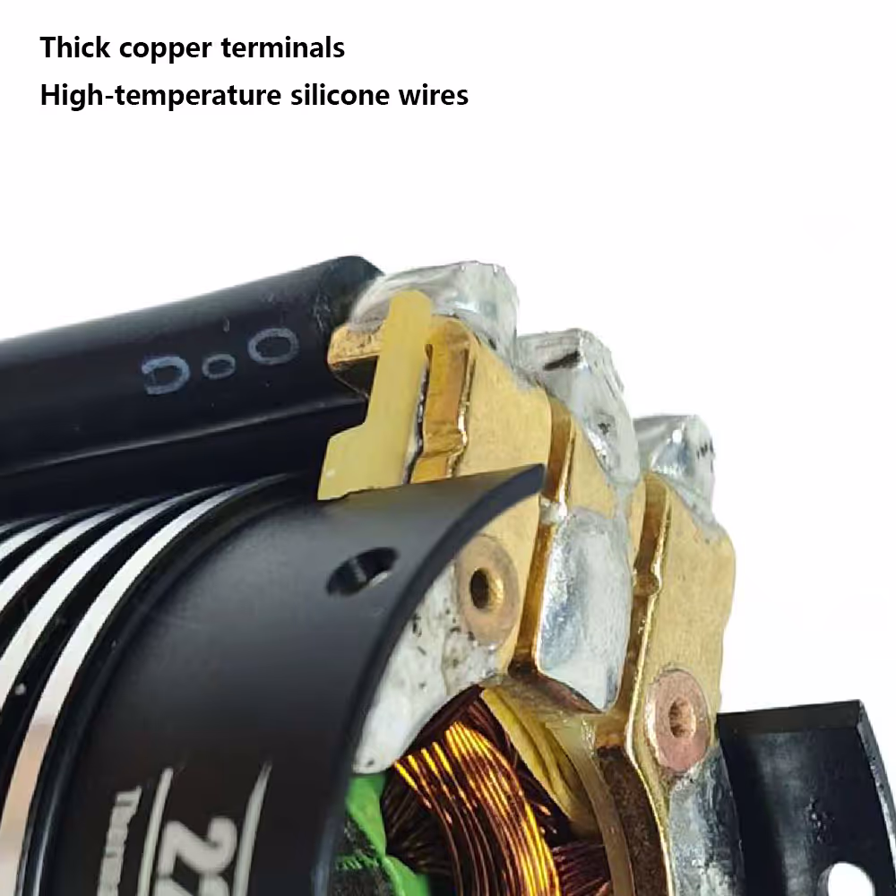 The RTS X-Series 2100KV motor is engineered for uncompromising performance and durability. It features 220°C high-temperature enameled wire, a reinforced explosion-proof rotor, and an ultra-high slot fill design, making the motor core virtually indestructible. A CNC-machined aluminum housing with high-density cooling fins improves heat dissipation efficiency by up to 30%, ensuring continuous peak power.